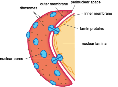 The nuclear membrane is made up of two membranes dotted with thousands of nuclear pores.