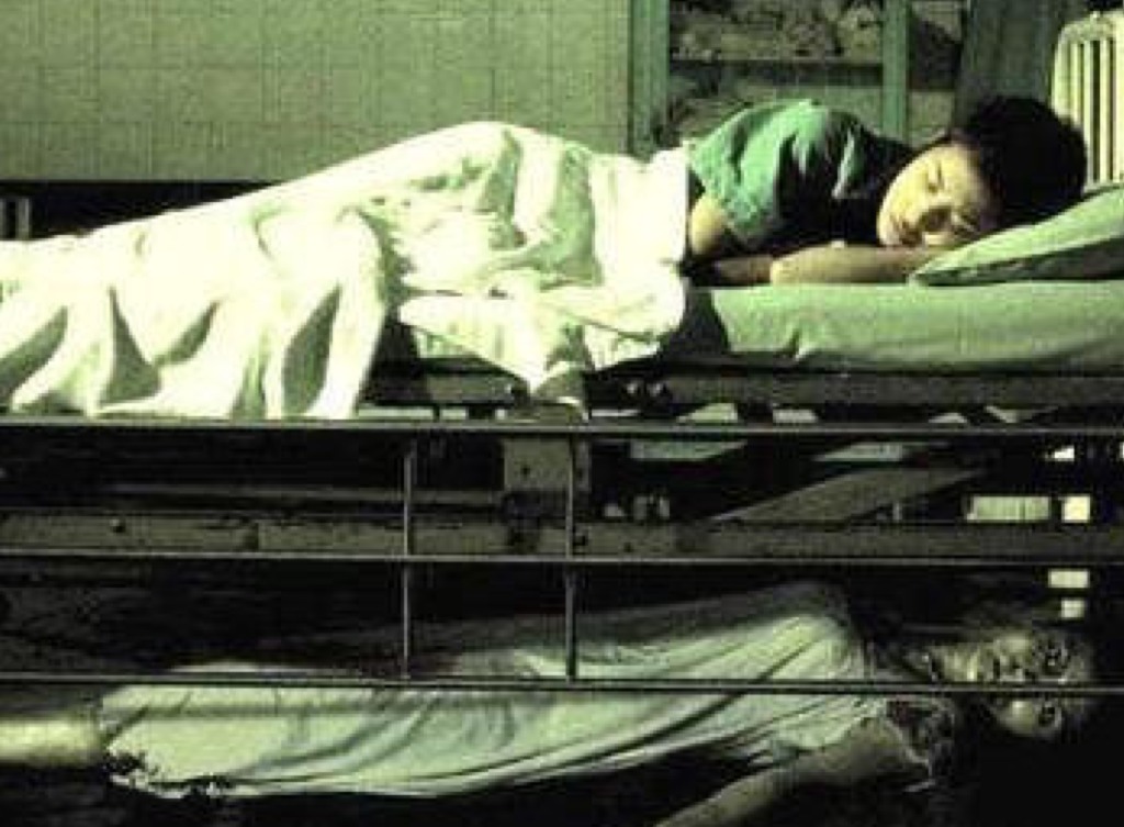 Young girl scared A monster Underneath her bed- Pull the covers Above her head. Woman is scared- A monster in her bed.