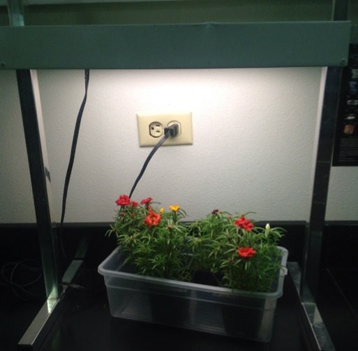 The lights shines on the flower giving it energy to grow benefiting the flowers, but the light doesn't get anything in return. Thus making this relationship commensalism.