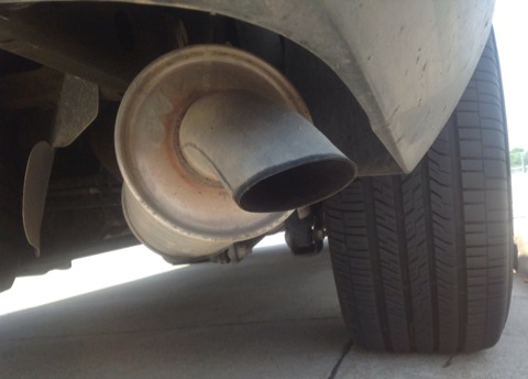 Exhaust pipe on a car releases carbon into the air.
