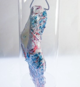 After the run, the shoes would be placed in a jar filled with living liquid protocell. The liquid works almost as a recharger or a reviver, keeping the living organisms in the shoes healthy and helping them rejuvenate. The liquid can also be dyed any color, so the shoes would take on the hue of its liquid protocell charger. It's an interesting concept that not only blurs the line between living and non-living organisms, but also pushes the boundaries of 3D printing. According to Aden, the technology is nearly here, and these shoes could become a reality by 2050'.