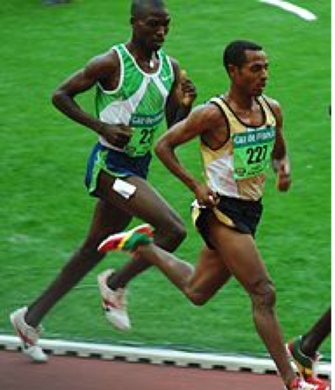 Kenenisa Bekele (Amharic: ቀነኒሳ በቀለ; Afaan Oromo: Qananiisaa Baqqalaa; born 13 June 1982) is an Ethiopian long-distance runner, who holds the world record and Olympic record in both the 5,000 metres and 10,000 metres events. He won a double at the 2008 Summer Olympics in these events; he also won the 2004 Olympic title over 10,000 m.