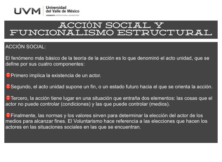 🔴Finalmente, las normas y los valores sirven para determinar la elección del actor de los medios para alcanzar fines. El Voluntarismo hace referencia a las elecciones que hacen los actores en las situaciones sociales en las que se encuentran.