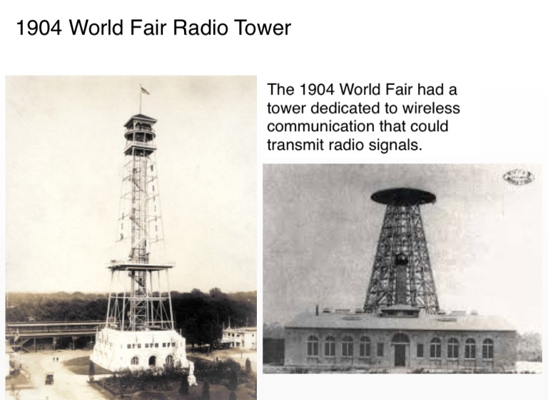 The 1904 World Fair had a tower dedicated to wireless communication that could transmit radio signals.