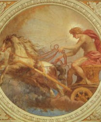Helios, the God of the Sun, was Selene's brother. He rode in a golden chariot, which is either seen as the sun itself or as guiding the sun behind it.
