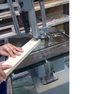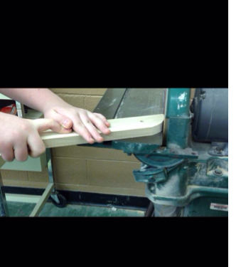 You drill the hole in the side piece and then cut the curve with the bandsaw and disk sander