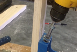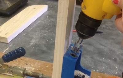 We took the template and drew the line fir which we would drill on. We aligned the line we drew with the one for the drill and we drilled it all the way down until it can't go anymore.