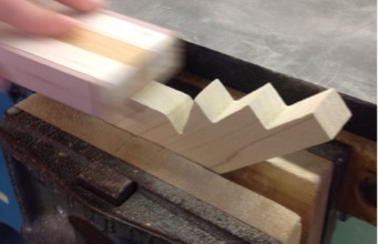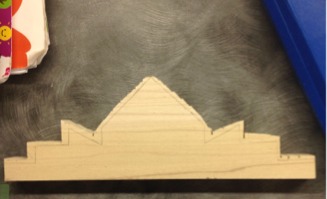 Once I got my block I traced my design on it and drew relief cuts. Then I went to the bandsaw to cut the relief cuts