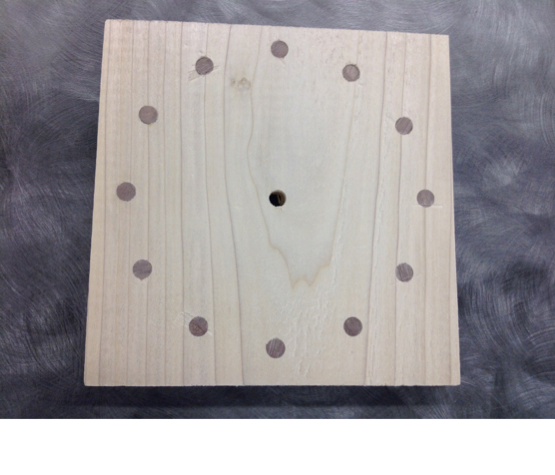 Next I drilled a hole for the clock hands which is smaller than the others