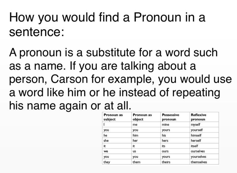 How you would find a Pronoun in a sentence: