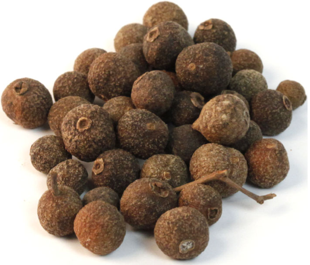 Allspice tastes and smells like a combination of spices. The berries have a combined flavor of cinnamon, nutmeg, and cloves with a hint of juniper and peppercorn, and smells similarly.