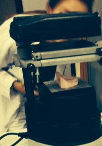 - Una vez seco el pegamento, procedemos a colocar el modelo en la termoconformadora centrandolo.