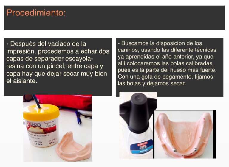 - Buscamos la disposición de los caninos, usando las diferente técnicas ya aprendidas el año anterior, ya que allí colocaremos las bolas calibradas, pues es la parte del hueso mas fuerte. Con una gota de pegamento, fijamos las bolas y dejamos secar.