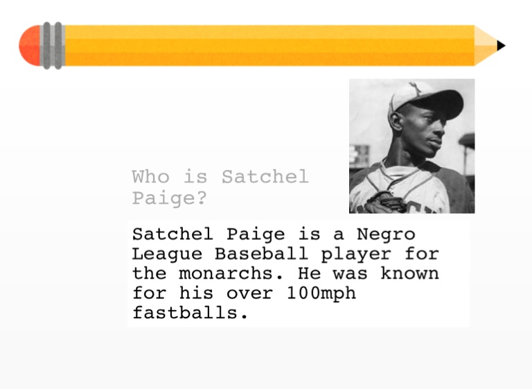 Satchel Paige is a Negro League Baseball player for the monarchs. He was known for his over 100mph fastballs.
