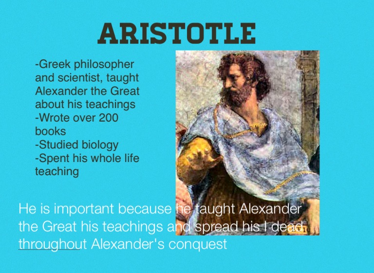 He is important because he taught Alexander the Great his teachings and spread his I dead throughout Alexander's conquest