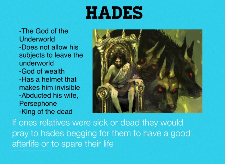 If ones relatives were sick or dead they would pray to hades begging for them to have a good afterlife or to spare their life