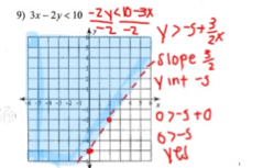 Next, test the point (0,0), if the statement is true, shade in the side that has the points (0,0).