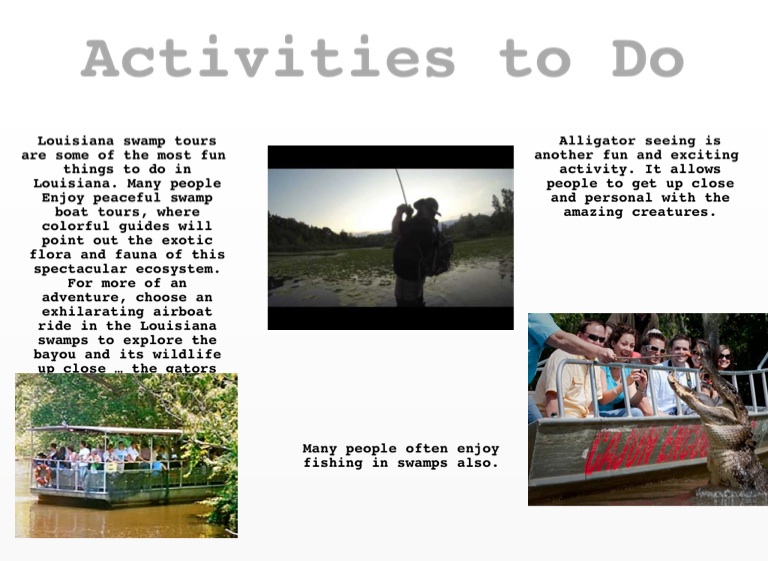 Louisiana swamp tours are some of the most fun things to do in Louisiana. Many people Enjoy peaceful swamp boat tours, where colorful guides will point out the exotic flora and fauna of this spectacular ecosystem. For more of an adventure, choose an exhilarating airboat ride in the Louisiana swamps to explore the bayou and its wildlife up close … the gators are waiting!