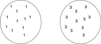 In the drawing below on the right you see two equally sized groups of ones and three. Their average is then a collection of twos but each two is just a calculated construct. We have only ones and threes.