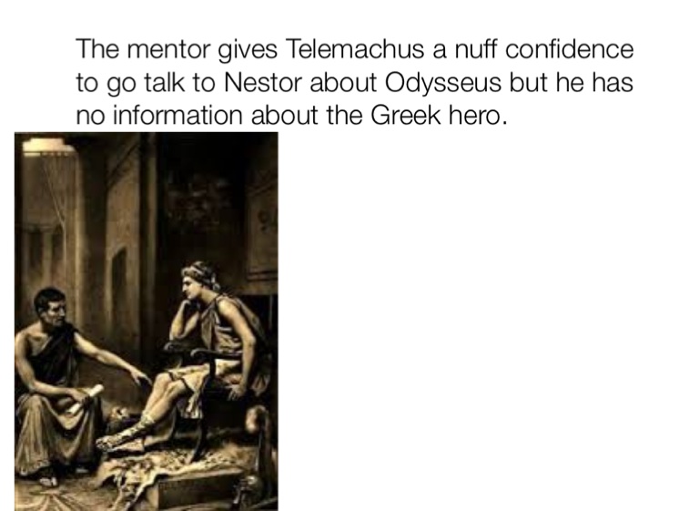 The mentor gives Telemachus a nuff confidence to go talk to Nestor about Odysseus but he has no information about the Greek hero.