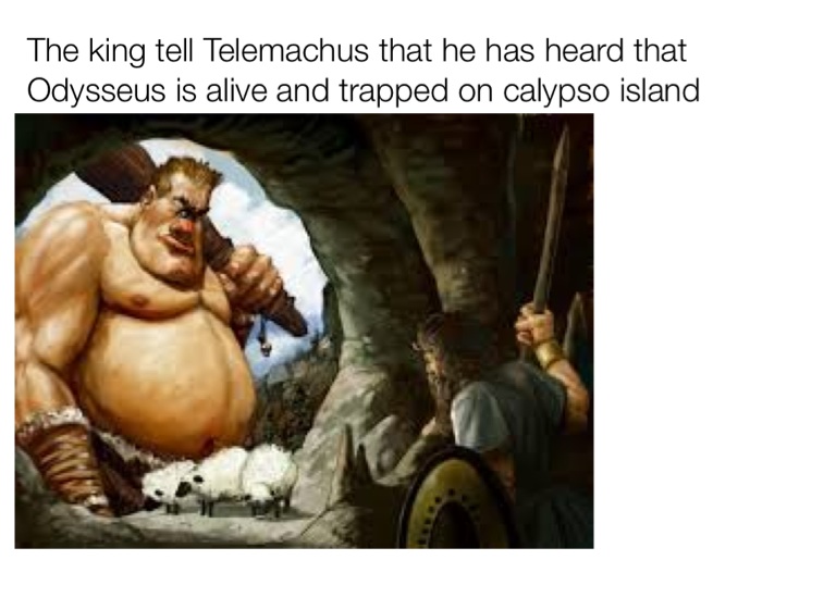 The king tell Telemachus that he has heard that Odysseus is alive and trapped on calypso island
