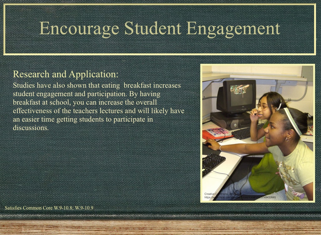 Studies have also shown that eating breakfast increases student engagement and participation. By having breakfast at school, you can increase the overall effectiveness of the teachers lectures and will likely have an easier time getting students to participate in discussions.