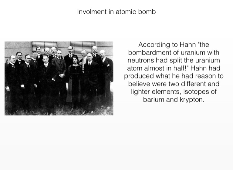 According to Hahn "the bombardment of uranium with neutrons had split the uranium atom almost in half!" Hahn had produced what he had reason to believe were two different and lighter elements, isotopes of barium and krypton.