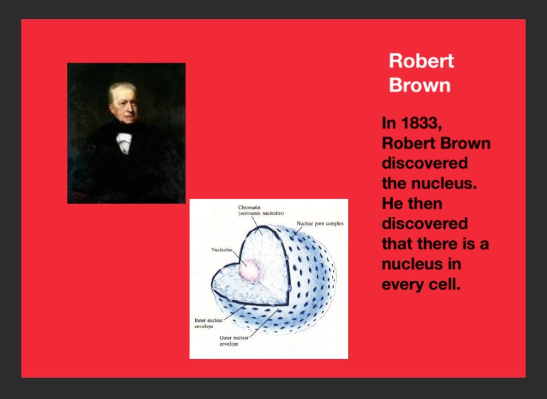 In 1833, Robert Brown discovered the nucleus. He then discovered that there is a nucleus in every cell.