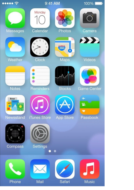 iOS 7′nin en büyük değişikliği elbette arayüzde oldu. Uzun süredir üzerinde çalışıldığı bilinen yeni arayüz daha şık ve sade. Simgeler yeniden tasarlanmış ve önceki sürümlere göre parlaklık düşürülmüş. Parlaklık düşmesine rağmen renk skalası iyice genişlemiş iOS 7′nin. Ekran görüntülerinden görebileceğiniz üzere daha renkli simgeler kullanılmış. Yeni renklere ek olarak şeffaflık efektleri ile de göze hoş gelen etkiler ortaya çıkarmayı başarmışlar. Bu şeffaflık-yarı şeffaflık oyunları sayesinde duvar kağıdını değiştirmeniz bile iPhone’unuzun farklı gözükmesini sağlayabiliyorsunuz.
