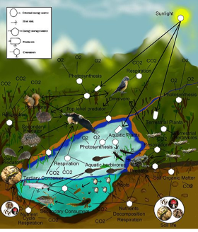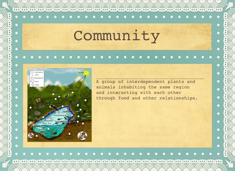 A group of interdependent plants and animals inhabiting the same region and interacting with each other through food and other relationships.
