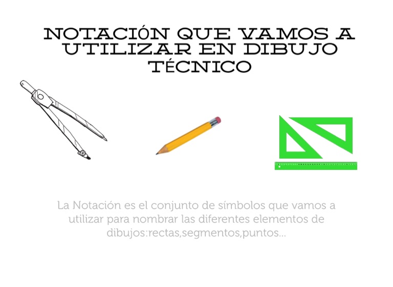 La Notación es el conjunto de símbolos que vamos a utilizar para nombrar las diferentes elementos de dibujos:rectas,segmentos,puntos...