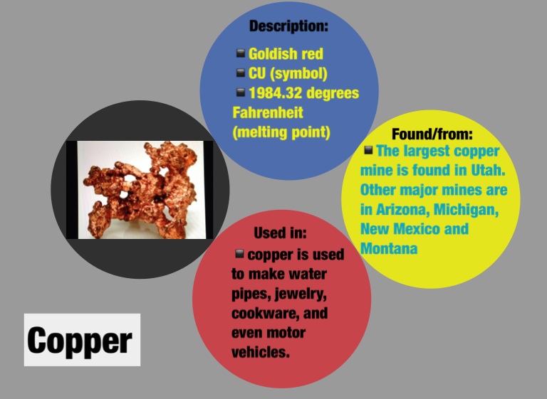 ▪️The largest copper mine is found in Utah. Other major mines are in Arizona, Michigan, New Mexico and Montana