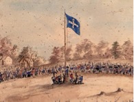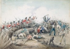 The response of the miners to the extra licence checks was to build the Stockade, named the Eureka Stockade, and barricade themselves in so the troopers couldn't get in to check their licences. In turn, the response of the authorities to this was to send in armed soldiers to break down the stockade, which was only flimsy anyway. This was the battle of the Eureka Stockade.