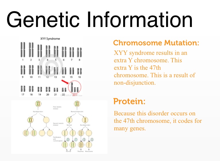 XYY syndrome results in an extra Y chromosome. This extra Y is the 47th chromosome. This is a result of non-disjunction.