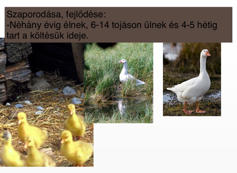-Néhány évig élnek, 6-14 tojáson ülnek és 4-5 hétig tart a költésük ideje.