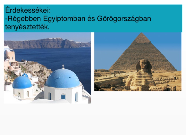 -Régebben Egyiptomban és Görögországban tenyésztették.