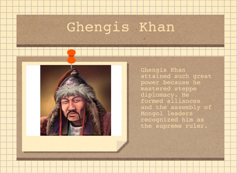 Ghengis Khan attained such great power because he mastered steppe diplomacy. He formed alliances and the assembly of Mongol leaders recognized him as the supreme ruler.