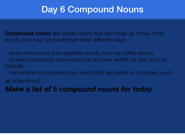 Compound nouns are usually nouns that are made up of two other words, and they can be formed three different ways: