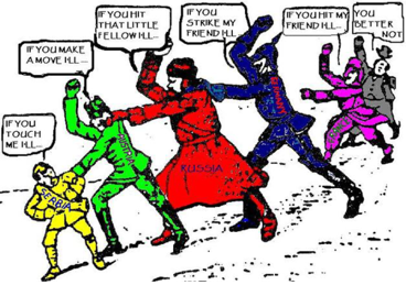 During WWI, Germany had made many alliances, but so had Britain. So once one country was attacked, it released a domino effect