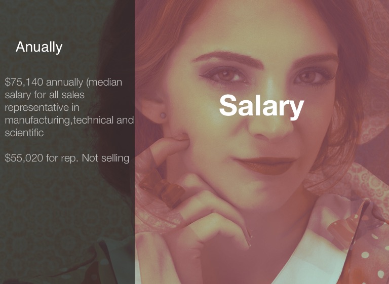 $75,140 annually (median salary for all sales representative in manufacturing,technical and scientific