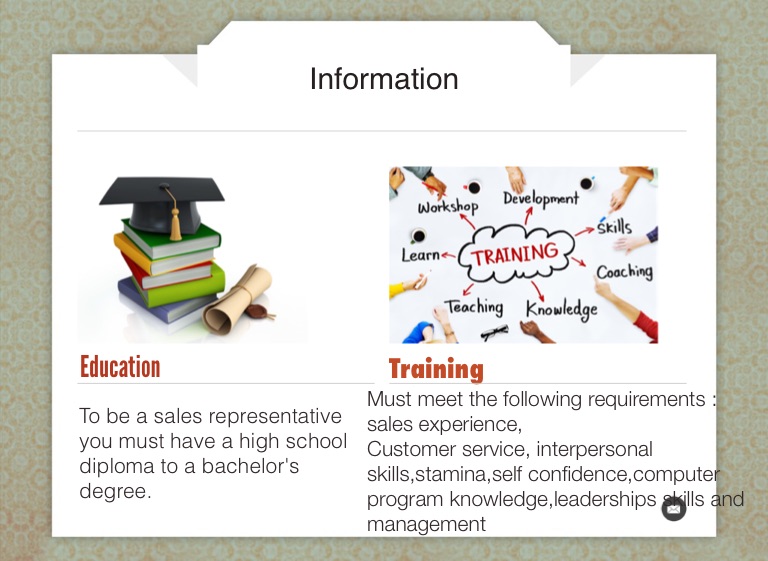 To be a sales representative you must have a high school diploma to a bachelor's degree.