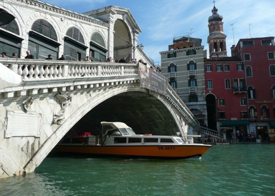 The Rialto Bridge is one of the four bridges spanning the Grand Canal in Venice, Italy. It is the oldest bridge across the canal, and was the dividing line for the districts of San Marco and San Polo.