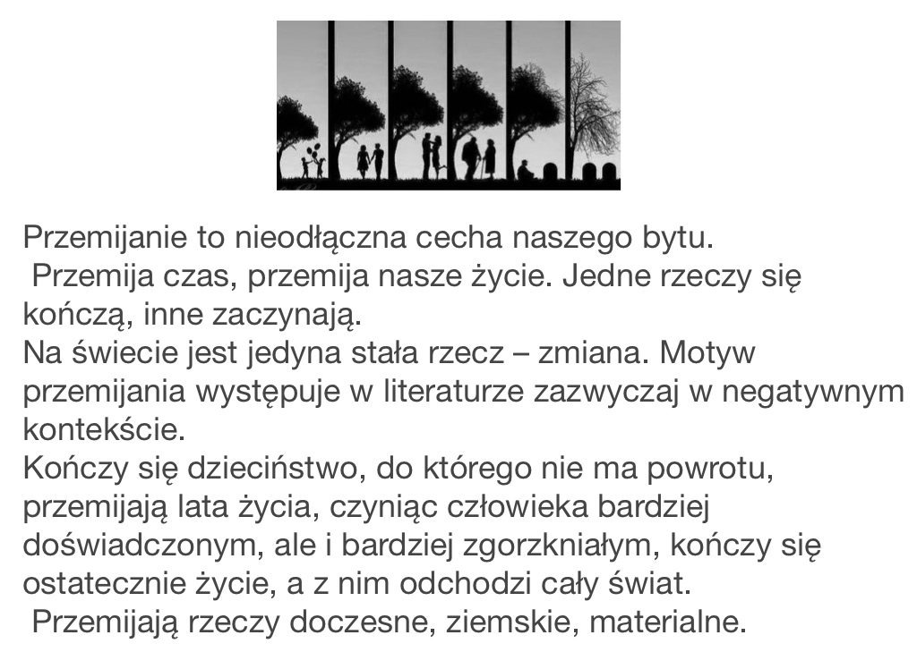 Na świecie jest jedyna stała rzecz – zmiana. Motyw przemijania występuje w literaturze zazwyczaj w negatywnym kontekście.