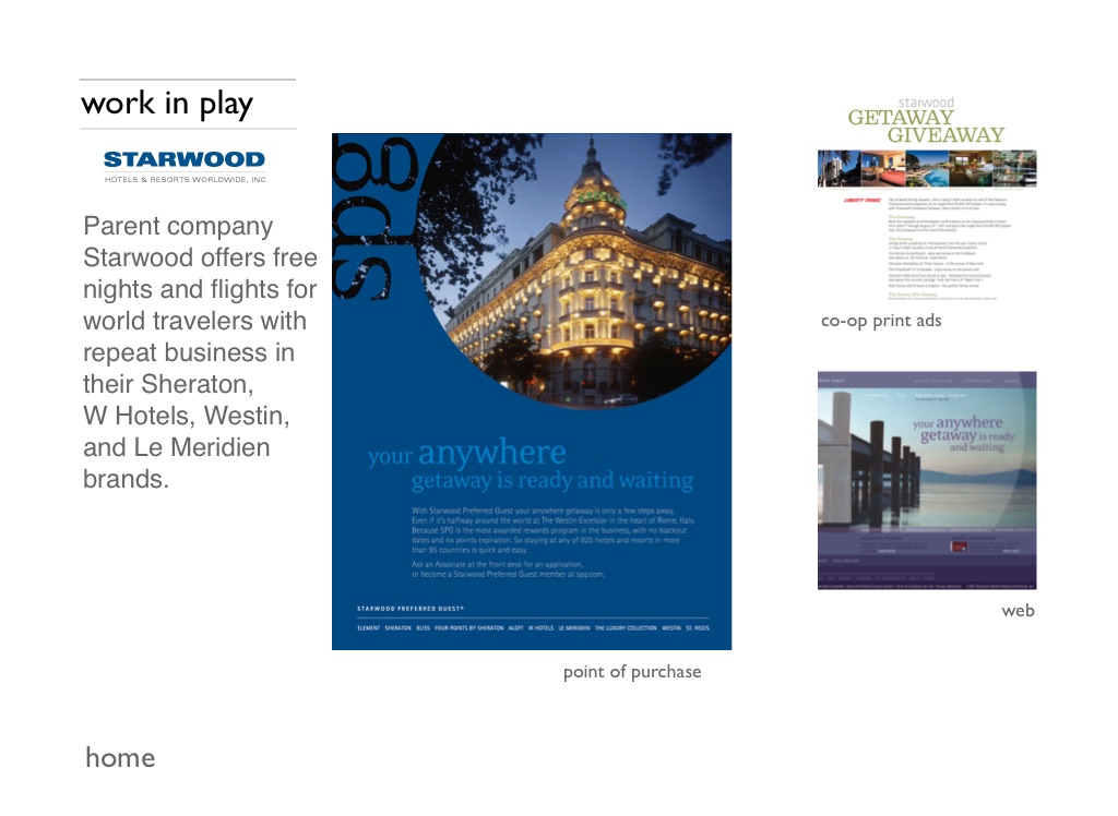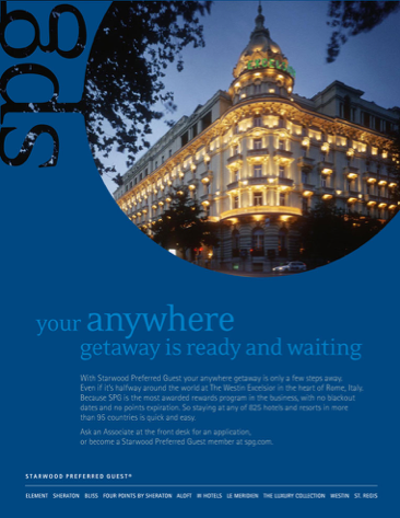 Parent company Starwood offers free nights and flights for world travelers with repeat business in their Sheraton,