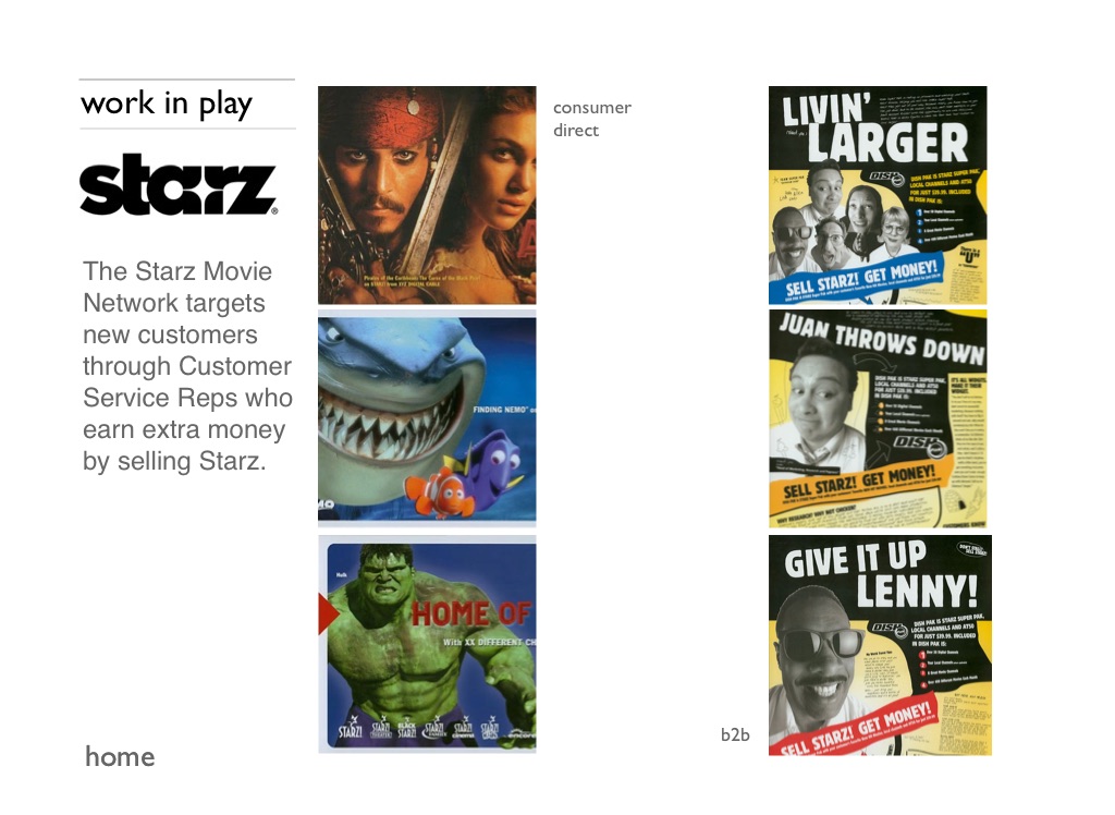 The Starz Movie Network targets new customers through Customer Service Reps who earn extra money by selling Starz.
