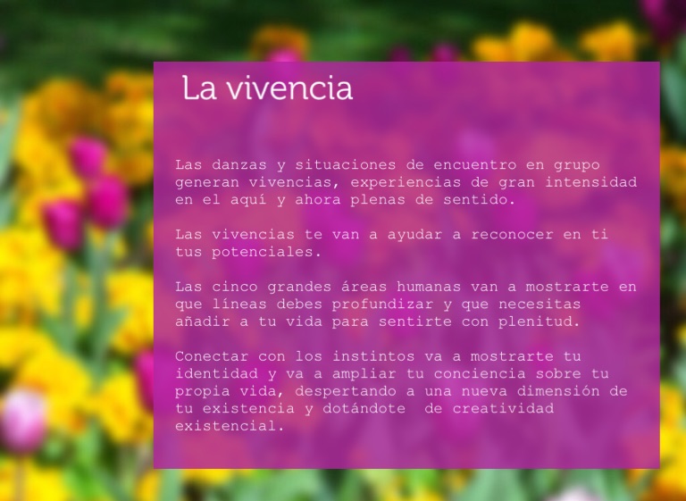 Las danzas y situaciones de encuentro en grupo generan vivencias, experiencias de gran intensidad en el aquí y ahora plenas de sentido.