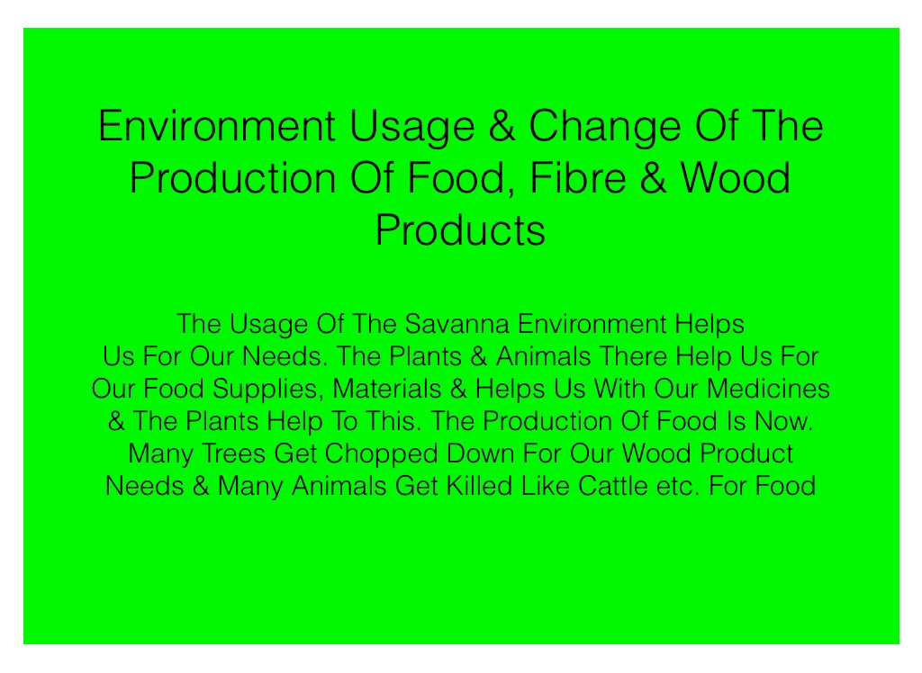 Environment Usage & Change Of The Production Of Food, Fibre & Wood Products