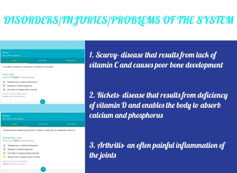 2. Rickets- disease that results from deficiency of vitamin D and enables the body to absorb calcium and phosphorus