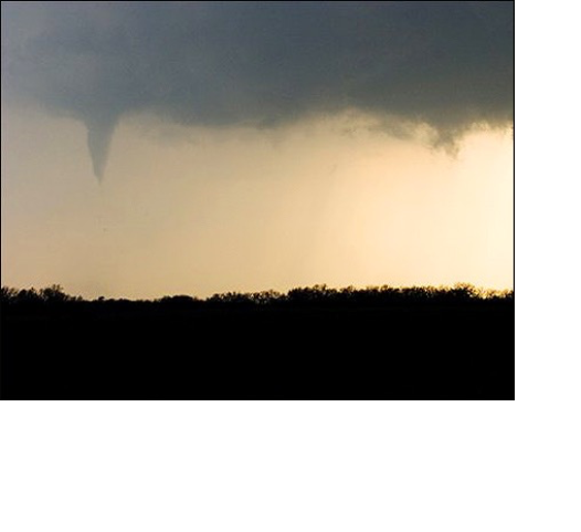 El tornado aparece en la base de la nube “Cumulunimbu” y se extiende hacia abajo hasta alcanzar el suelo .