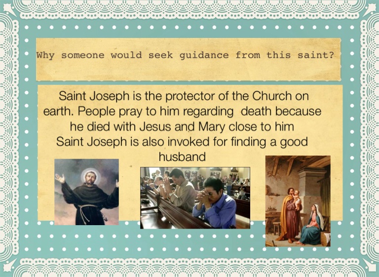 Saint Joseph is the protector of the Church on earth. People pray to him regarding death because he died with Jesus and Mary close to him